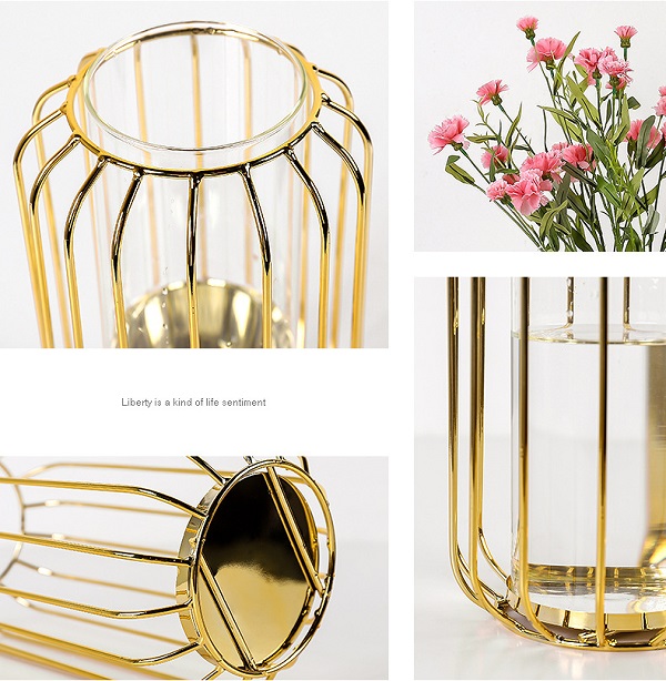 - Chất liệu : Bình thủy tinh bên trong, bên ngoài thanh kim loại mạ vàng thiết kế kiểu dáng theo hình đèn lồng.