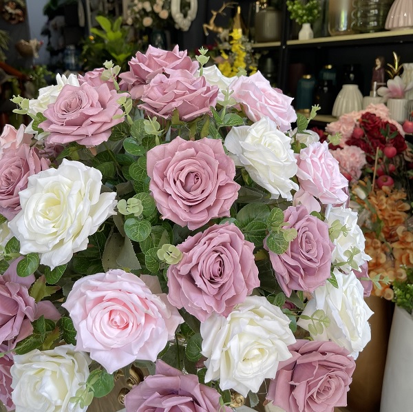 - Bình hoa hồng vải để bàn cổ điển tone pastel nhẹ nhàng, thích hợp trang trí phòng khách, phòng ăn hoặc phòng ngủ. Thich hợp làm quà tặng nhân dịp khai trương nhà hàng, Spa...