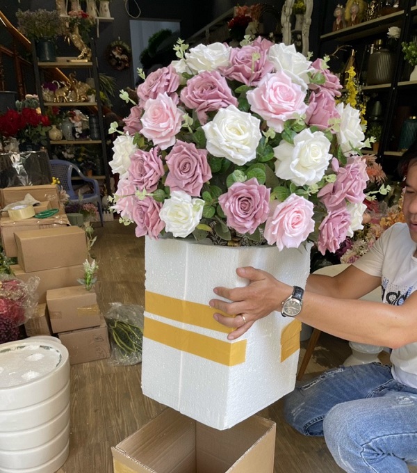 - Quy cách đóng hàng : Bình hoa được đóng thùng xốp kỹ càng bởi lớp xốp và thùng carton bên ngoài trước khi giao tới nơi cho khách, nên quý khách hàng hoàn toàn yên tâm khi nhận hàng. Trong trường hợp bình bị bể vỡ trong quá trình vận chuyển, shop sẽ bù sản phẩm mới. Dưới đây là hình ảnh chụp thực tế khi đóng hàng giao cho khách.