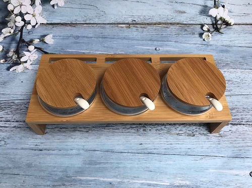 Chất liệu : khay và nắp gỗ thông 100%, hũ thủy tinh cao cấp bóng đẹp