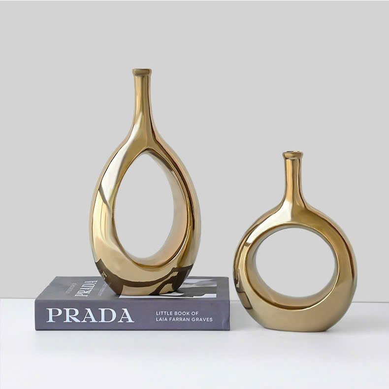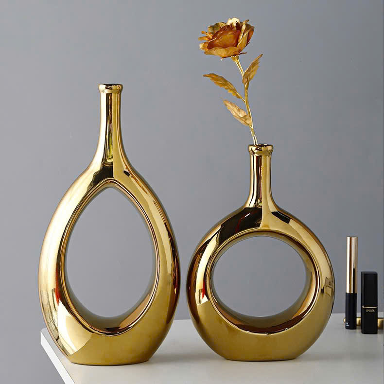 Bộ bình vòng tròn sứ mạ vàng là sản phẩm trang trí vô cùng độc đáo và sang trọng, có thể cắm hoa trang trí hoặc làm decor trang trí căn hộ, trang trí phòng khách, phòng ngủ...