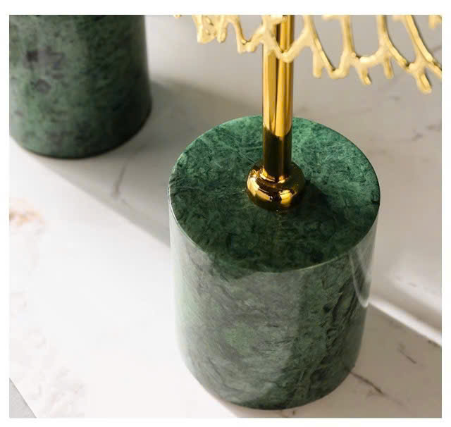 - Chất liệu : Hoa và thân cây bằng kim loại mạ vàng, đế hoa bằng đá phong thủy xanh