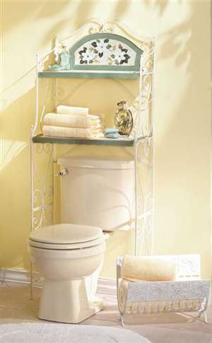 Không gian bên trên bồn vệ sinh ít được chú ý đến, tuy nhiên bạn hoàn toàn có thể tận dụng không gian này để lưu trữ vật dụng đối với những phòng tắm có không gian nhỏ hẹp với những chiếc kệ tinh tế và sang trọng.