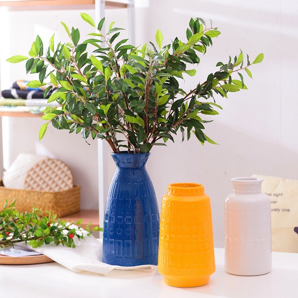 Bình gốm sứ với 3 màu nổi bật xanh, vàng, trắng, kèm theo đó là họa tiết cổ điển làm điểm nhấn mang đến một vẻ đẹp mới lạ và độc đáo. Với mẫu bình gốm này, bạn có thể cắm hoa hoặc làm Sản phẩm trang trí trong nhà cũng rất bắt mắt. Bạn có thể chọn những mẫu hoa thật, hoặc HOA VẢI CAO CẤP để phối với bình.