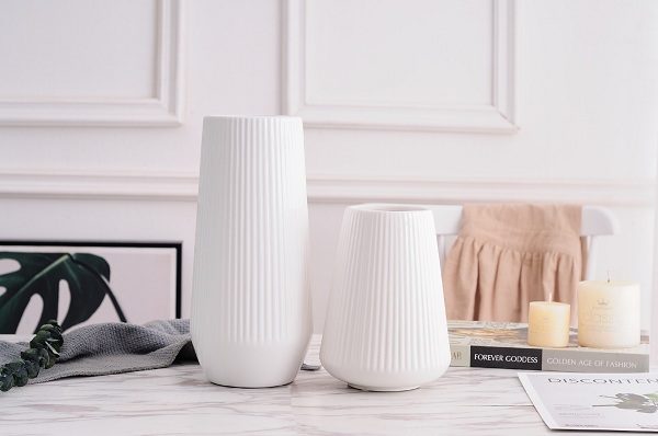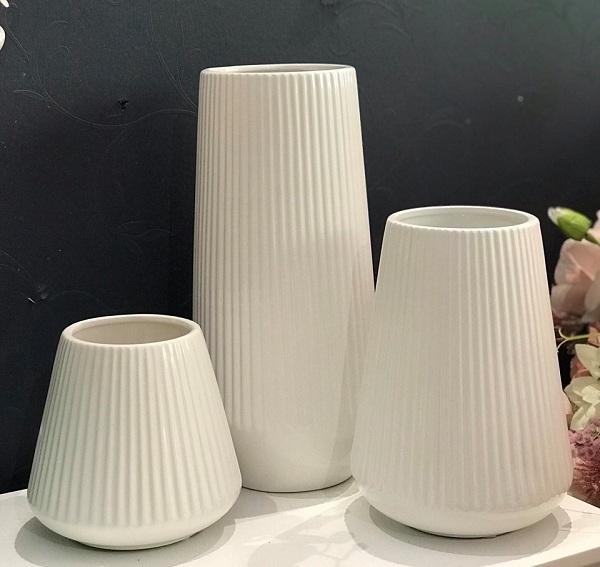 - Tên sản phẩm : Bình sứ cắm hoa trắng vân sọc trắng