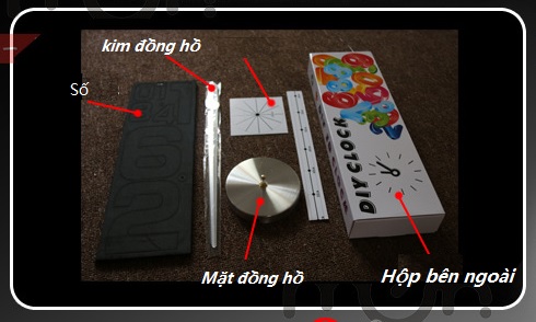 Chất liệu : trục đồng hồ bằng kim loại, chữ số bằng xốp phía dưới, phía trên là mặt mica kiếng