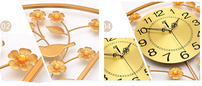 Đồng hồ treo tường nghệ thuật chim công nổi treo dọc 07