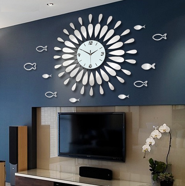 Đồng hồ treo tường decor mặt trời vàng đính đá cao cấp 02