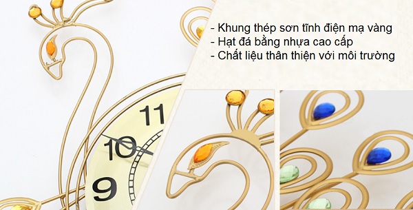 Đồng hồ treo tường chim công ngang 04