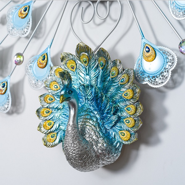 Đồng hồ treo tường nghệ thuật chim công nổi treo dọc 07