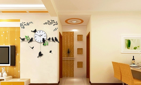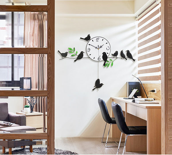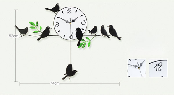 Đồng hồ treo tường nghệ thuật chim công nổi treo dọc 07