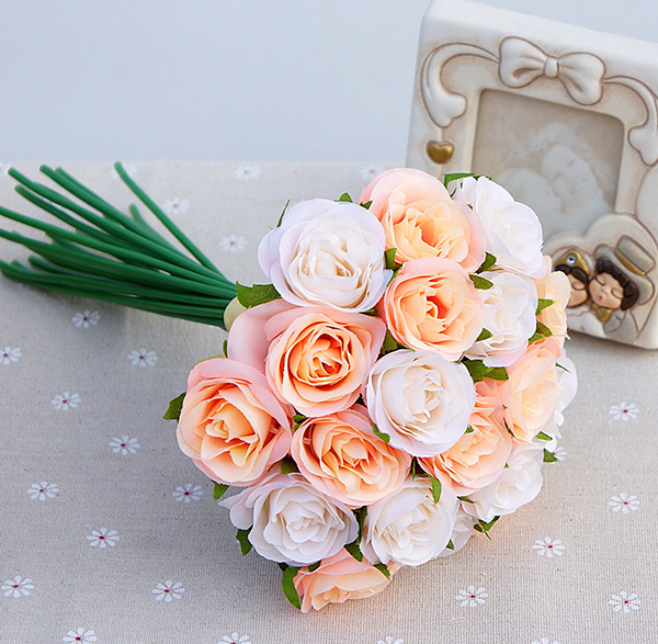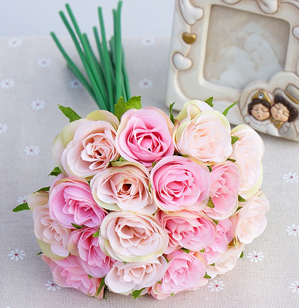 Kích thước : Hoa có đường kính 3.5cm, Bó hoa có đường kính 13.5cm, Chiều dài toàn bó 26cm