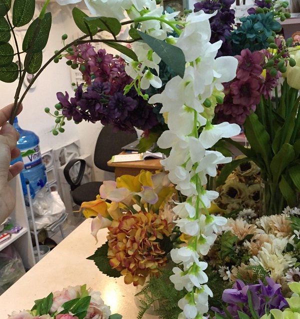 Kích thước : Chiều dài từ cành đến ngọn hoa là 70cm, 1 cành gồm 2 cành hoa ngắn và dài